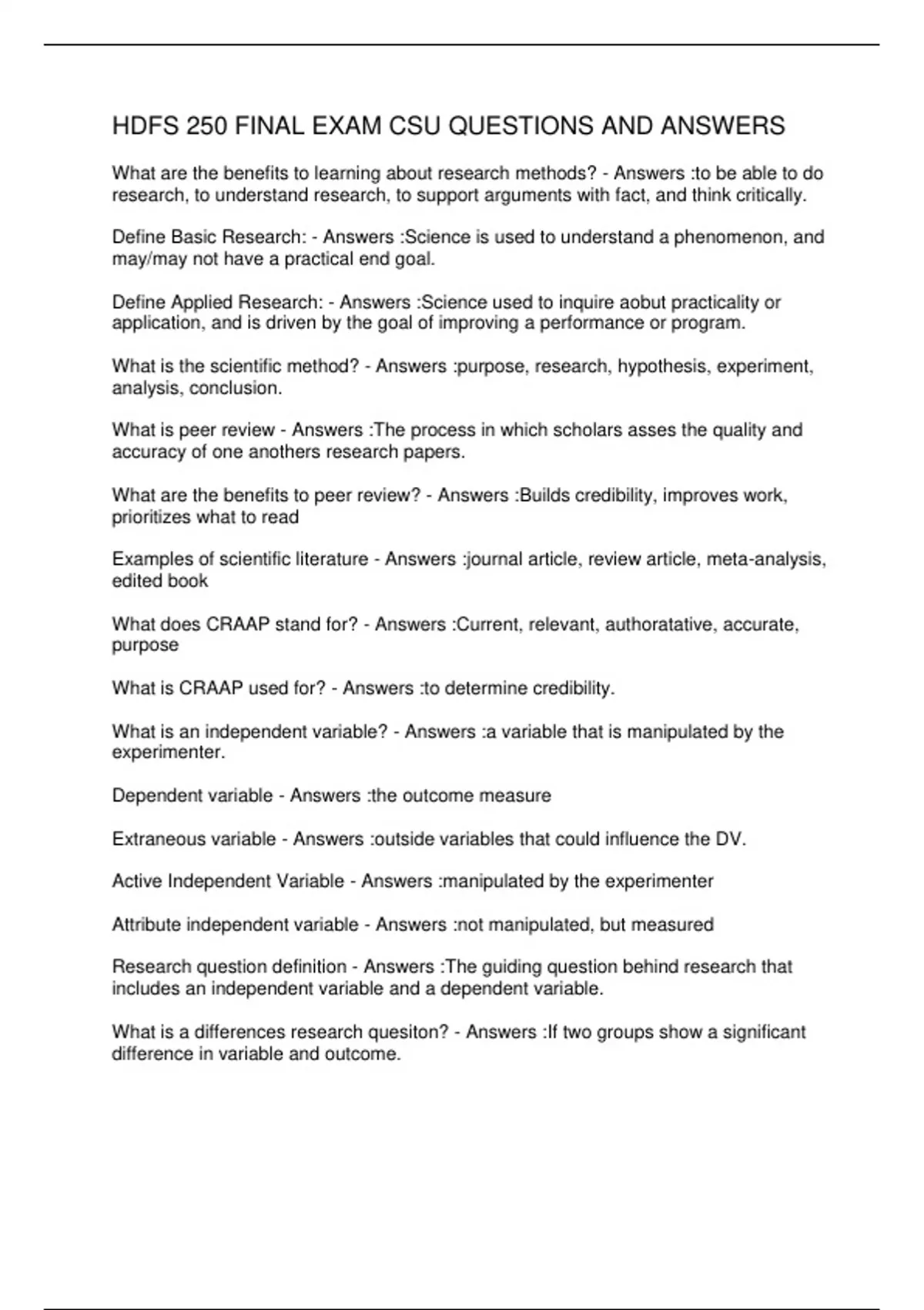 HDFS 250 FINAL EXAM CSU QUESTIONS AND ANSWERS - HDFS 250 - Stuvia US
