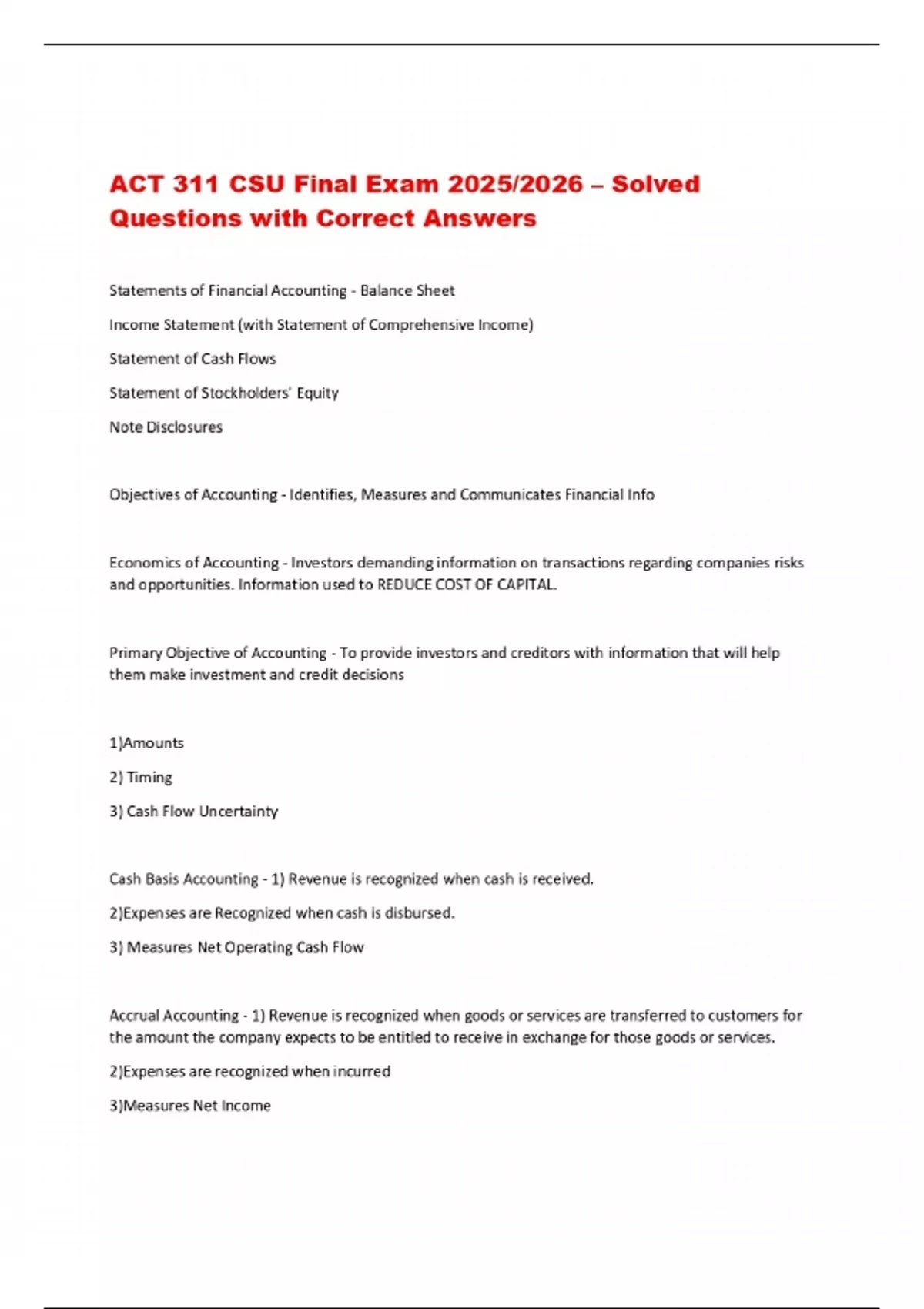 ACT 311 CSU Final Exam 2025/2026 – Solved Questions with Correct ...