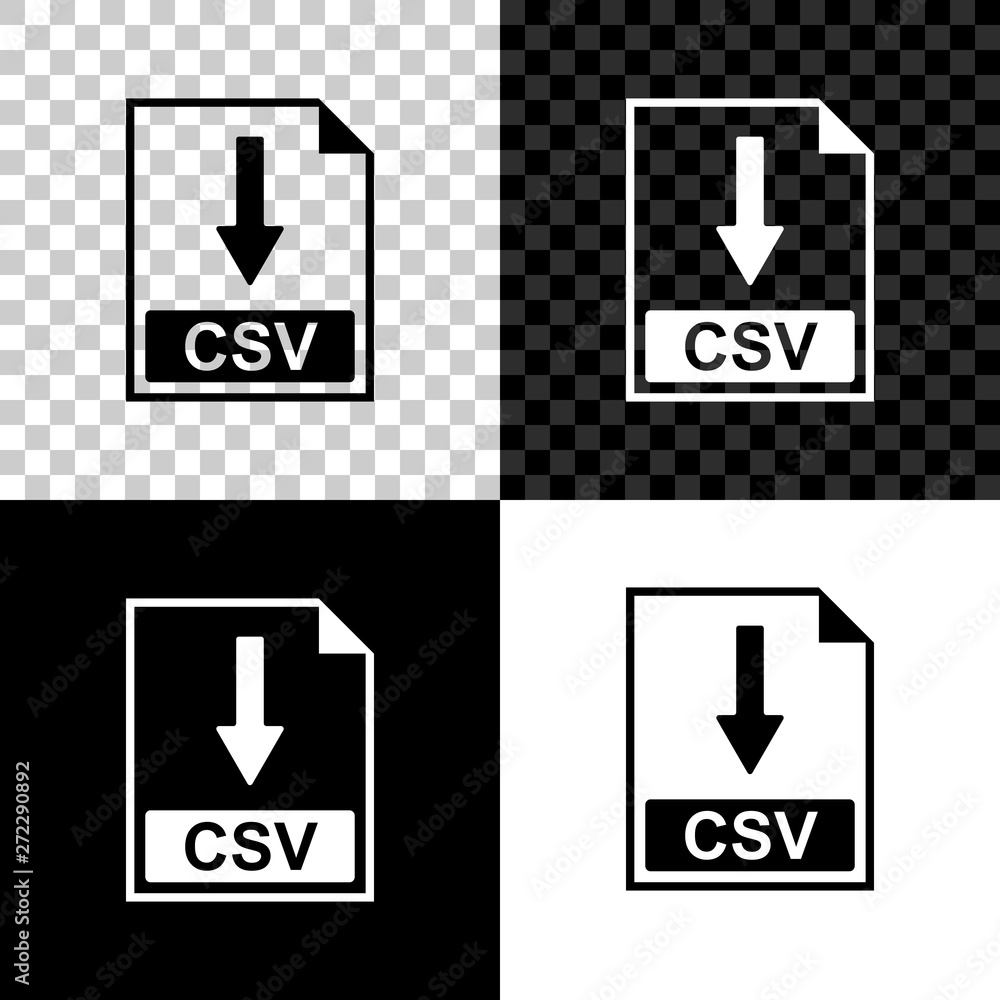 CSV file document icon. Download CSV button icon isolated on black ...