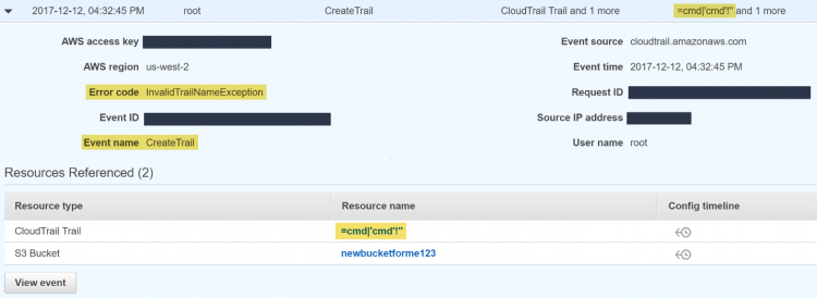 Cloud Security Risks (P2): CSV Injection in AWS CloudTrail - Rhino ...