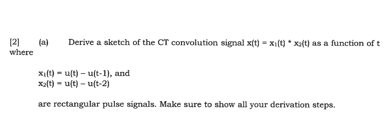 Solved (a) Derive a sketch of the CT convolution signal x(t) | Chegg.com