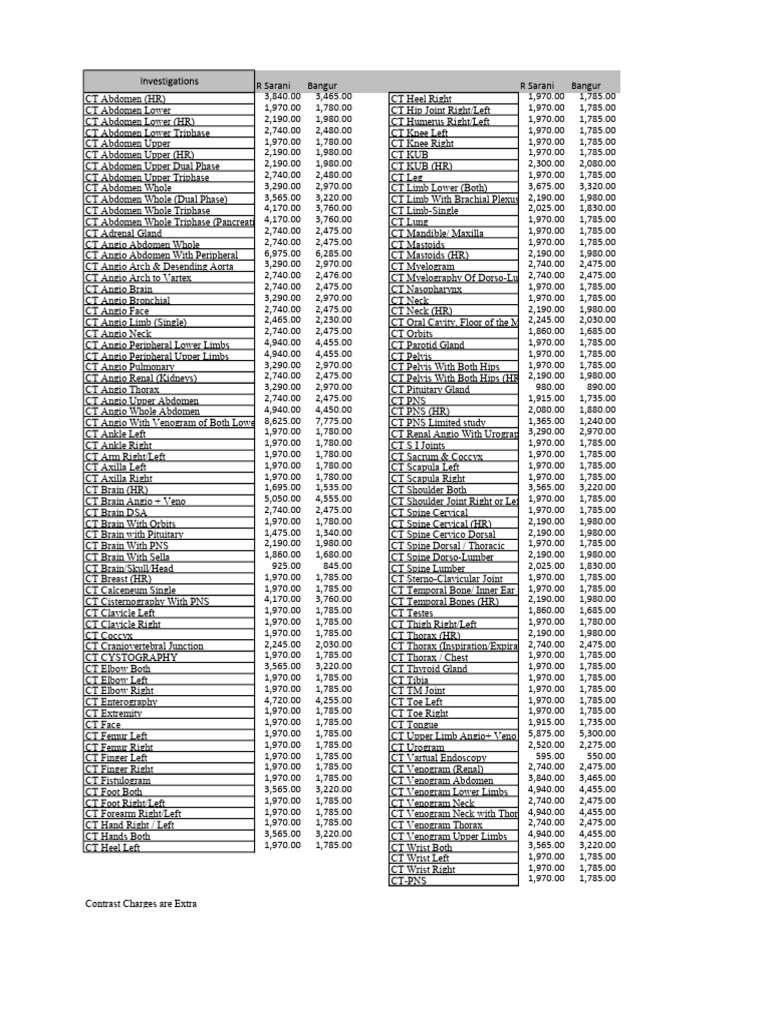 CT scan charges | PDF | Vertebral Column | Ct Scan