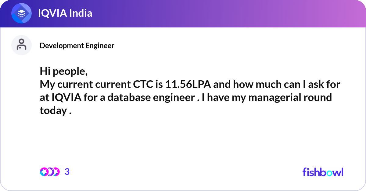 My current CTC is 15 LPA. My expected CTC is 25 LP... | Fishbowl