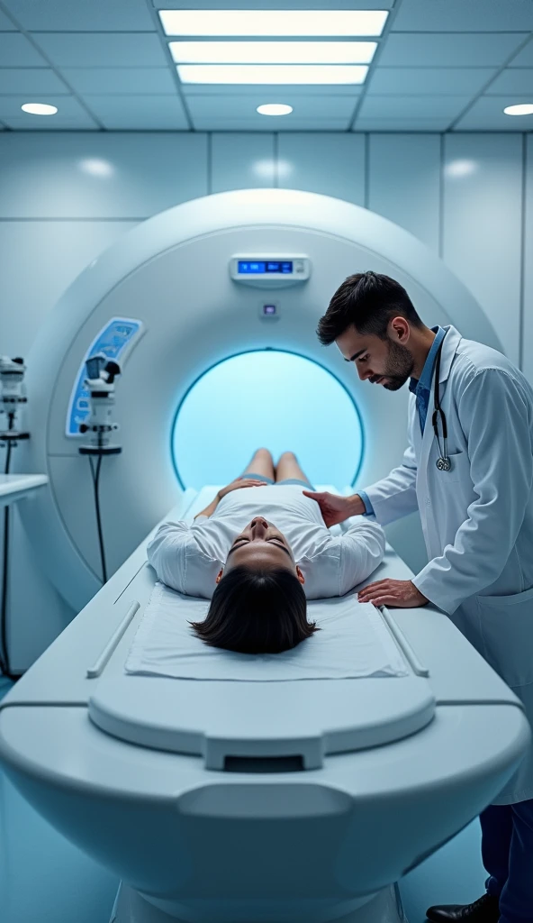 Cut a CT machine in action, THE TOMOGRAPHY MACHINE WITH A PATIENT LYING ...