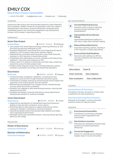 12 Data Analyst CV Examples And Templates For 2025 - CVDesigner.ai
