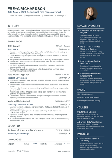 Data Analyst CV - 2 Examples & UK Template [Free Download]