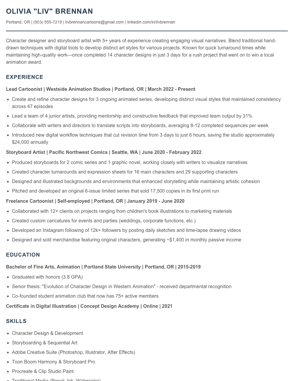 Cartoonist Resume Examples & Templates 2025 - Resume.AI