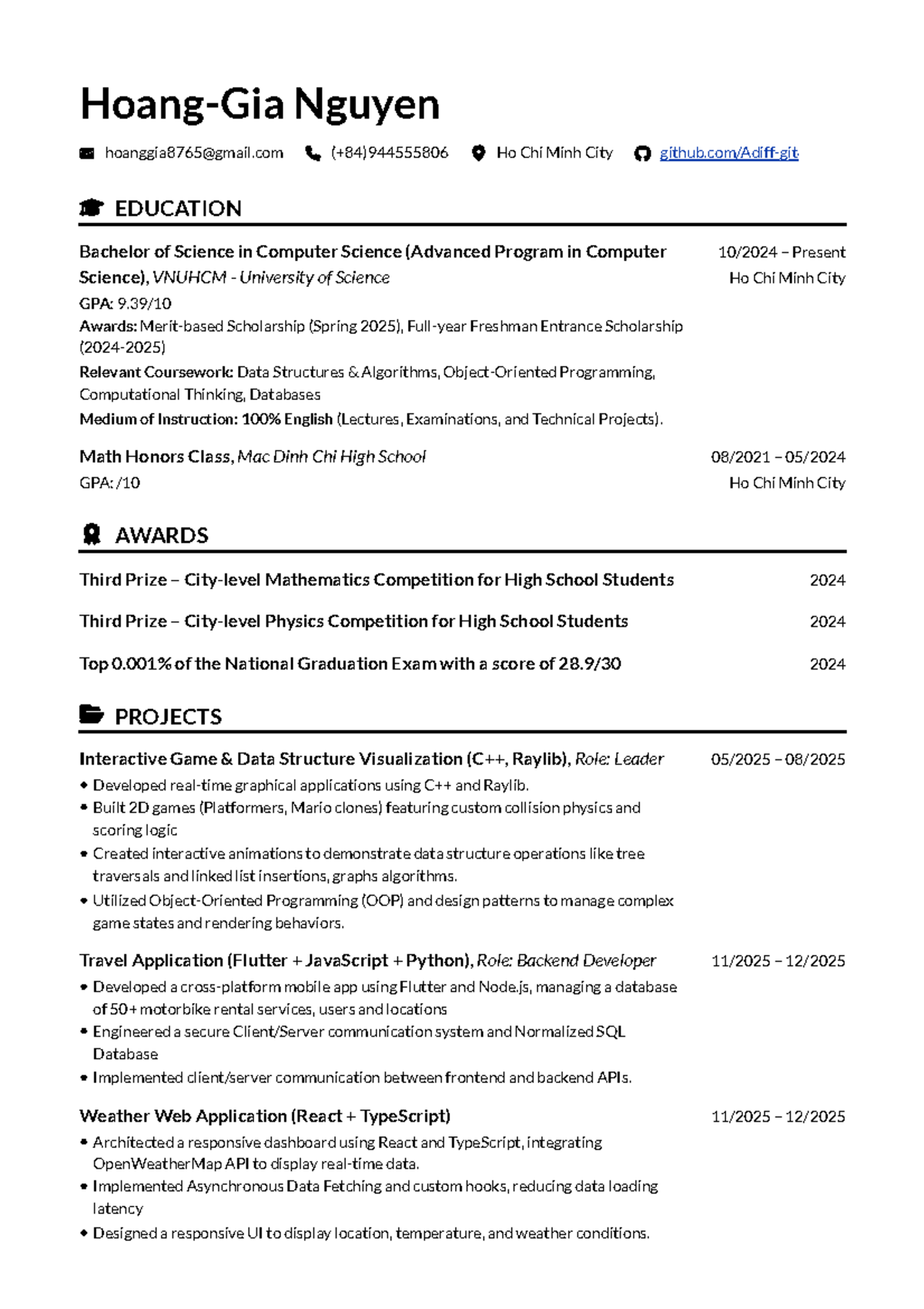 Hoang-Gia Nguyen CV - Bachelor of Science in Computer Science (2026 ...