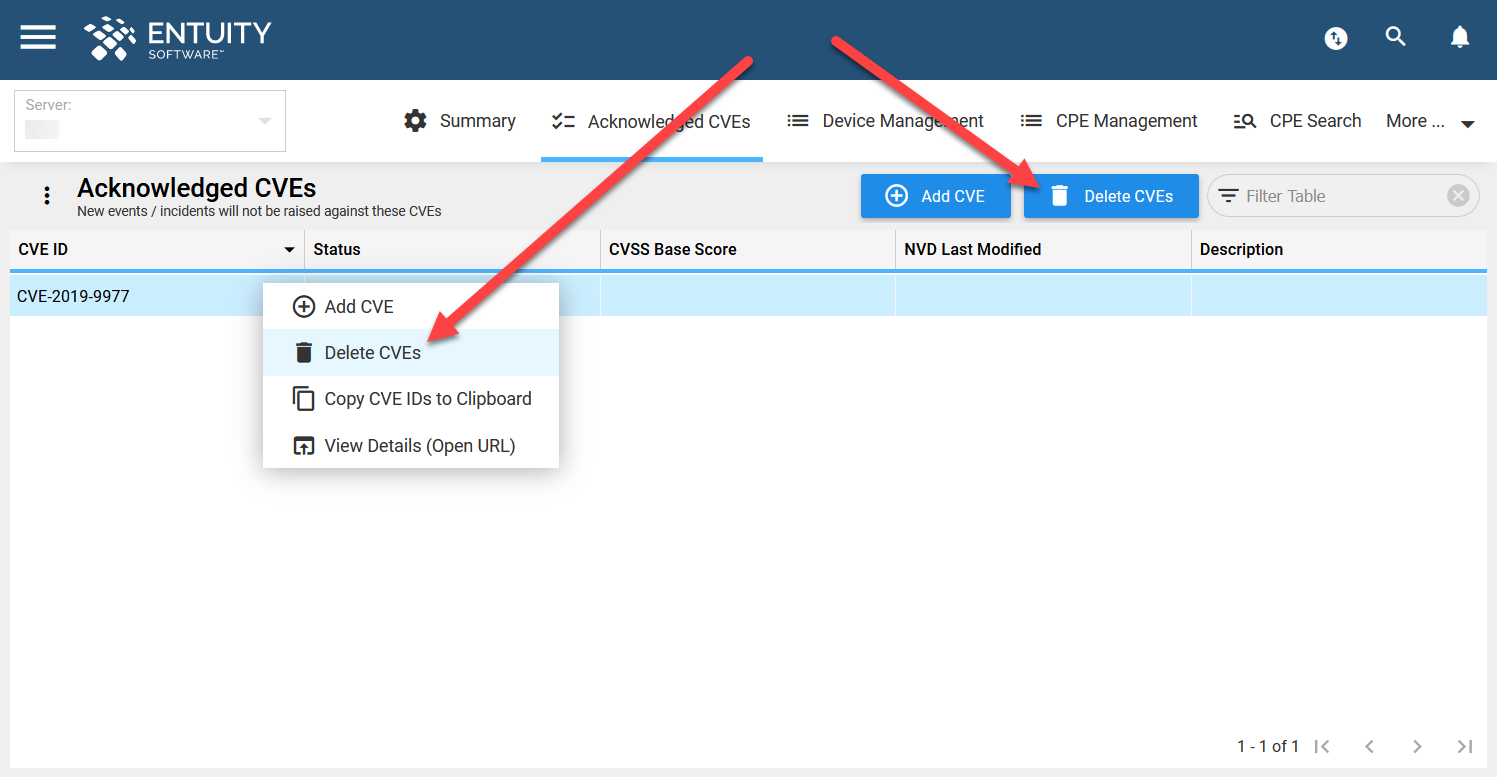 Vulnerability Monitoring - Acknowledged CVEs – Entuity