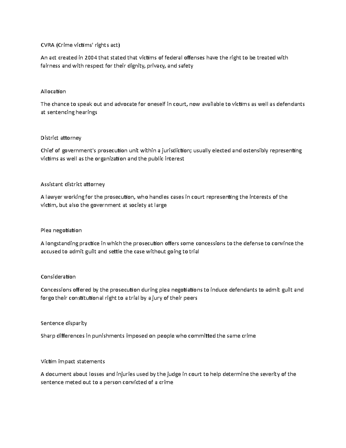Victimology final exam review - CVRA (Crime rights act) An act created ...