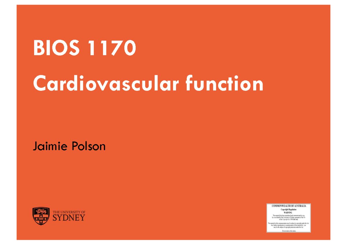 CVS function zoom practical class notes - BIOS 1170 Cardiovascular ...