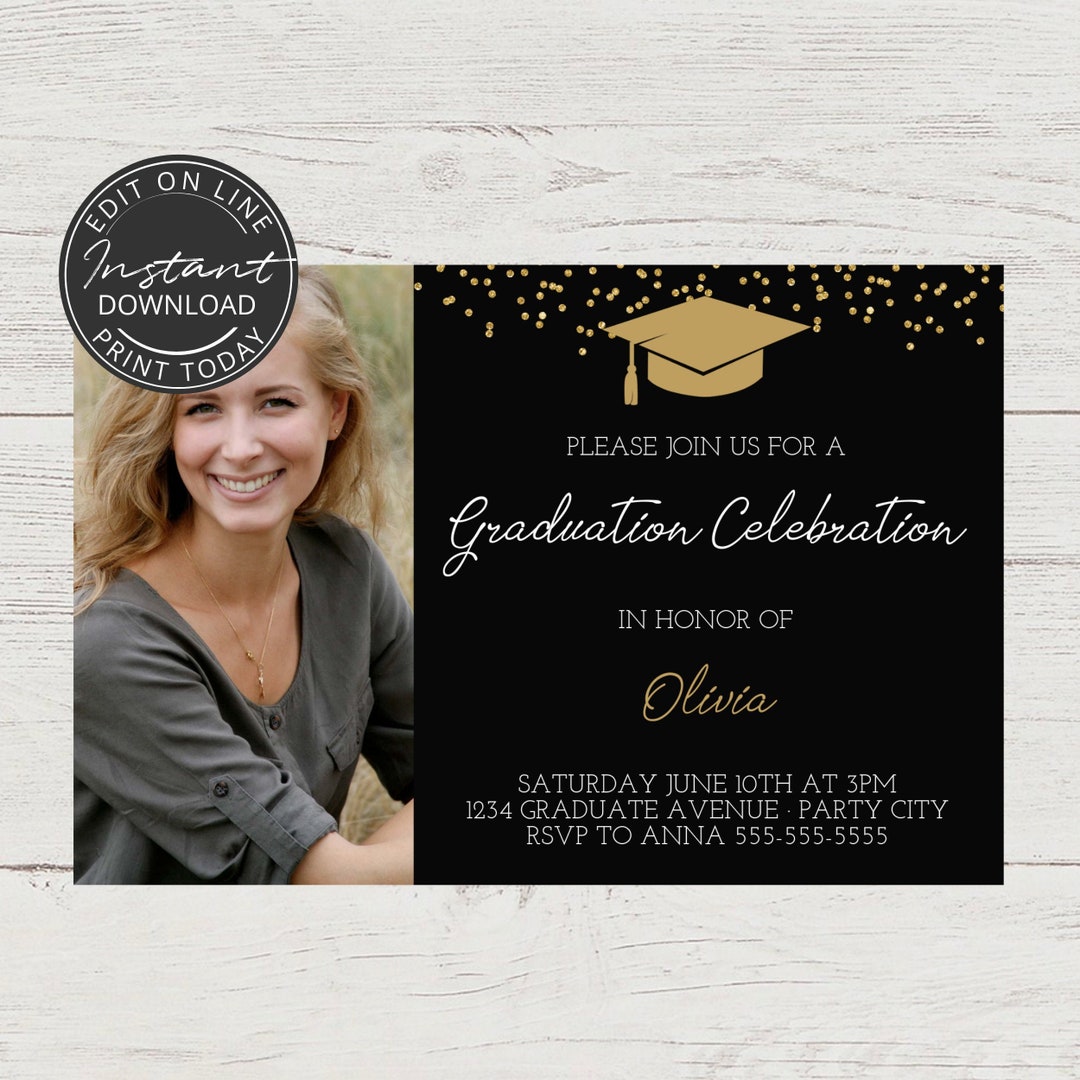 Graduation Invitation With Picture - Digital Download - Customizable - Etsy