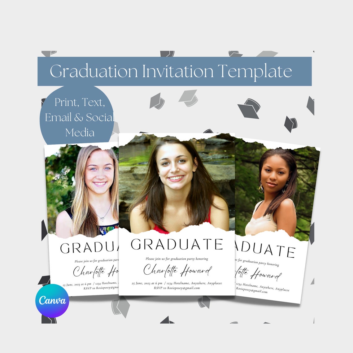 Graduation Editable Invitation, 3 Photo Minimalist Design, Self-edit ...