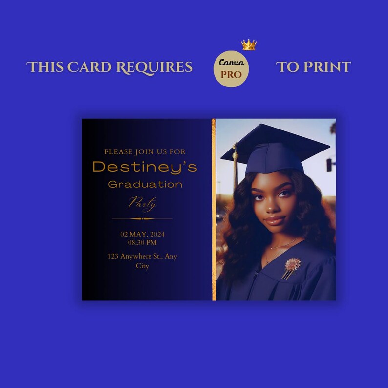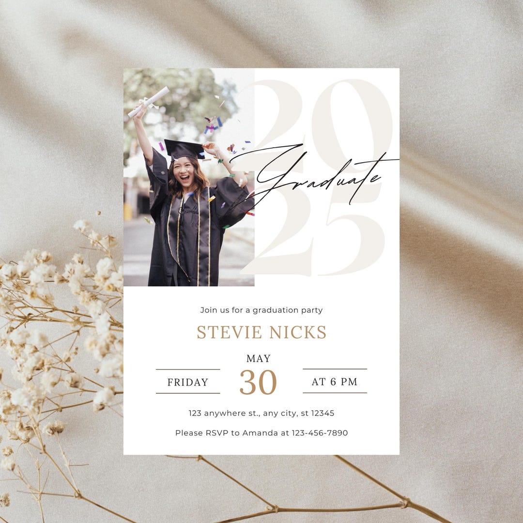 Graduation Photo Invitation, Unique Editable Canva Template for ...