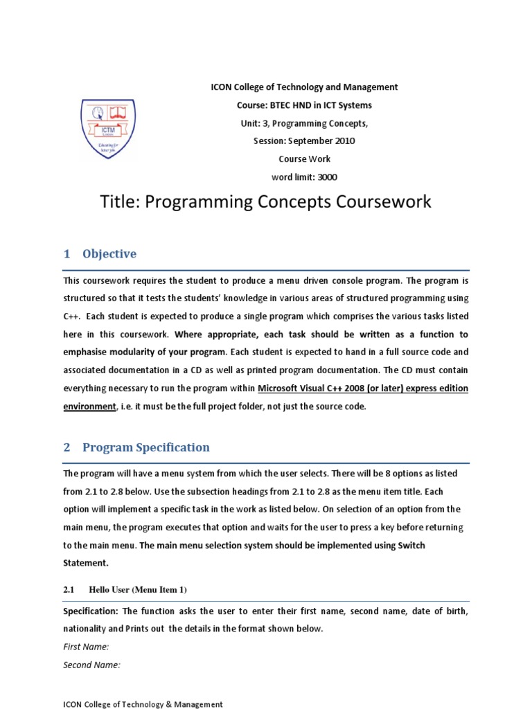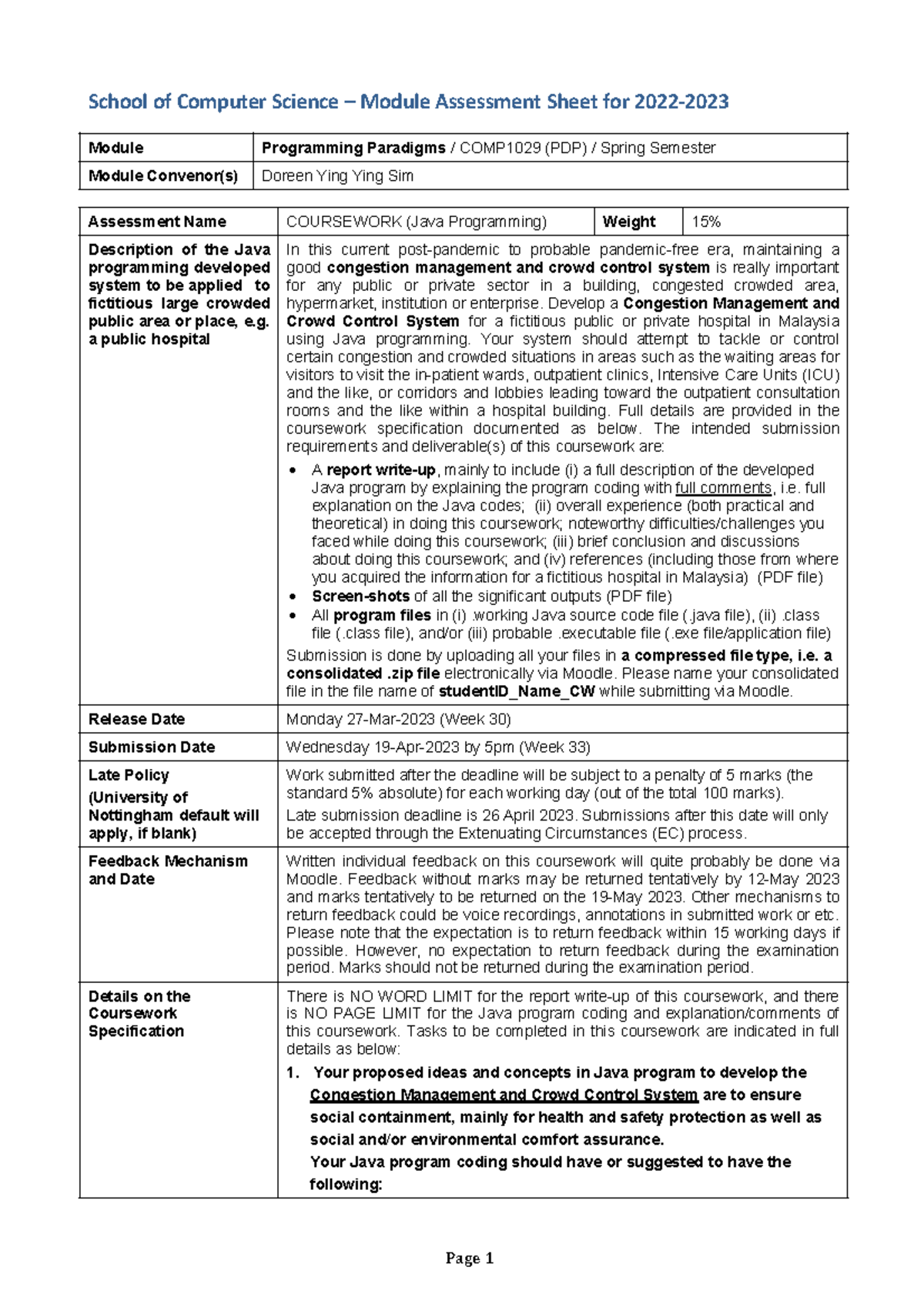 COMP1029 CW Java - School of Computer Science – Module Assessment Sheet ...