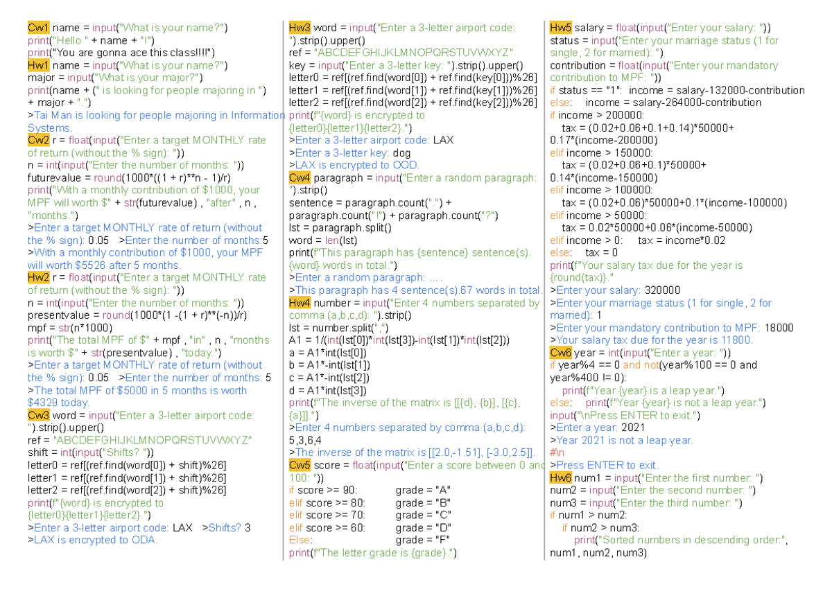 2240 Coding Assignments Cheat Sheet: Cw1 to Cw6 Notes - Studocu