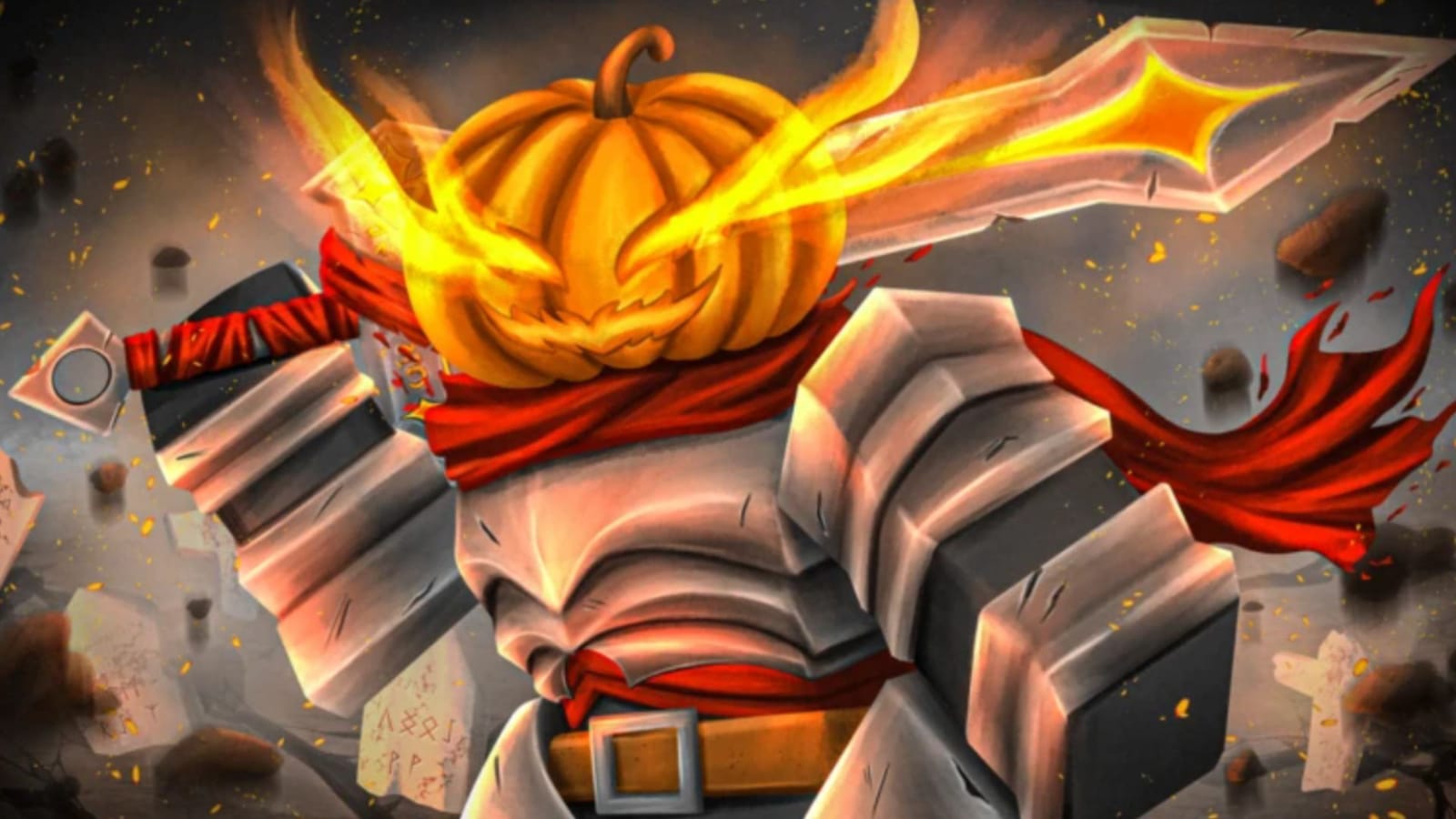 Epic Halloween Image Featuring Pumpkin-Head Warrior with Fiery Sword in ...