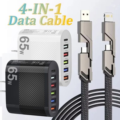 4 in 1 Fast Charging Cable Cell Phone Charger Cord For iPhone Type C ...