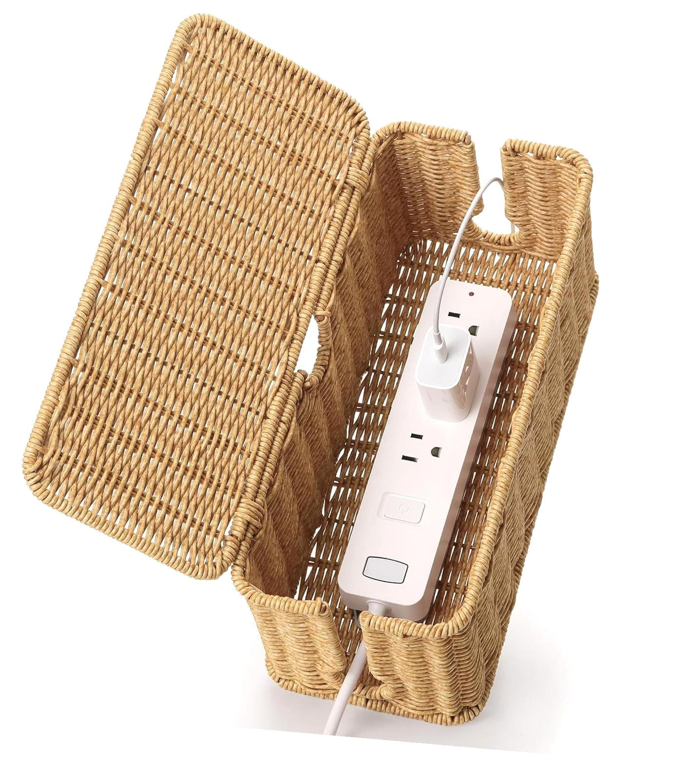 HYKE Cord Concealment Box in Brown, Faux Rattan Wire Manager Cord ...
