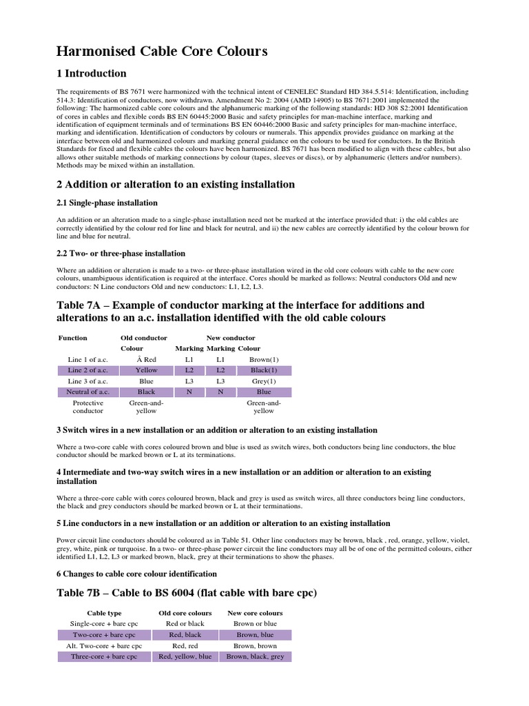 Harmonised Cable Core Colour Standards | PDF | Alternating Current ...
