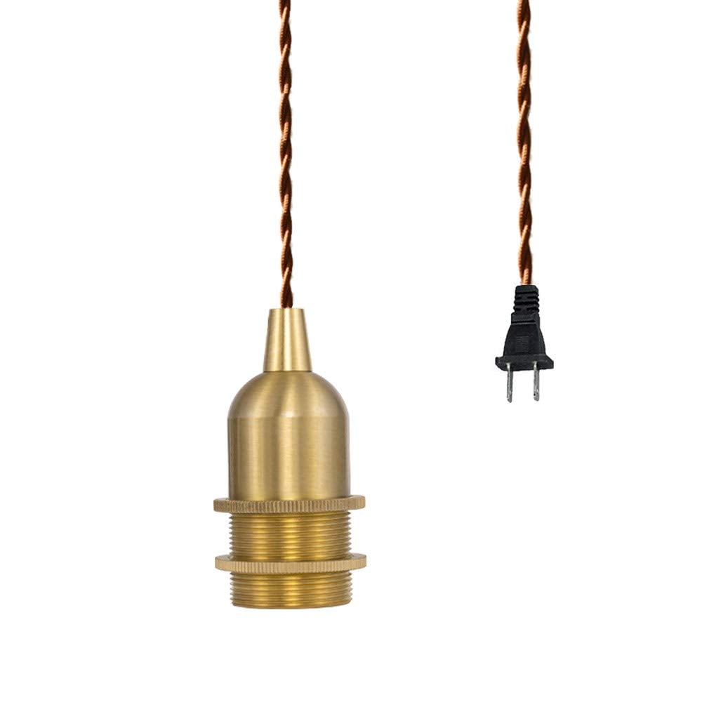 FSLiving 9.8ft Plug in Brown Twisted Cable Pendant Light Brass Base ...