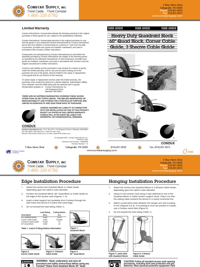 Condux Quadrant Block Corner Cable Guide - 3 Sheave Cable Guide | PDF ...