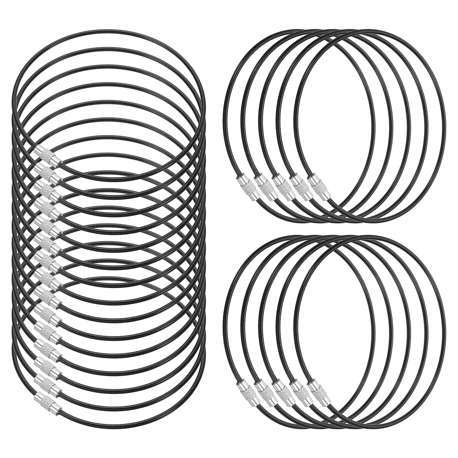 6.3 Inch Stainless Steel Wire Keychain Cable Key Ring Loop, Black, 20 ...