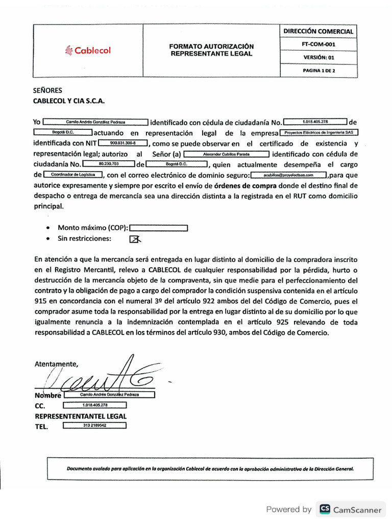 Carta Cablecol | PDF