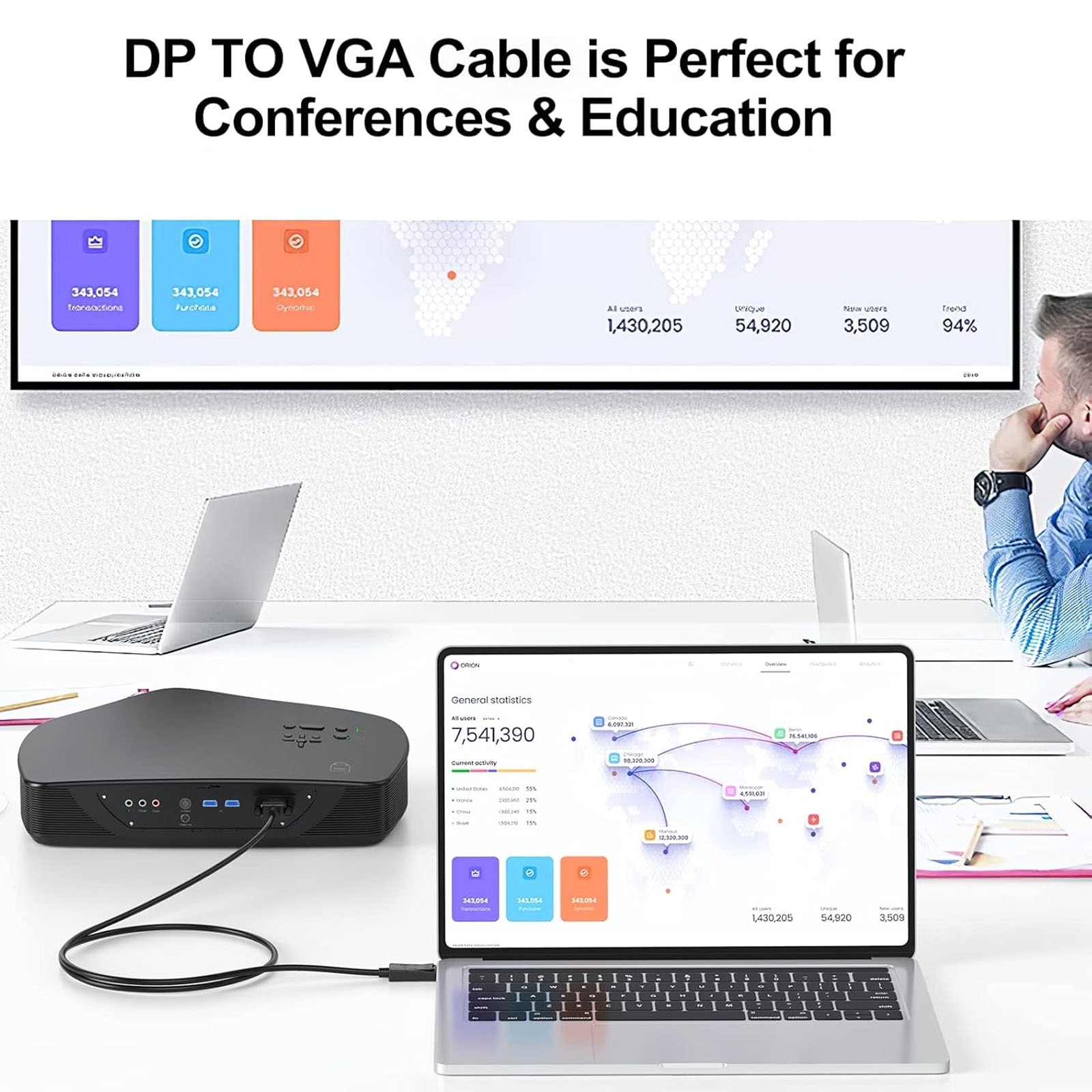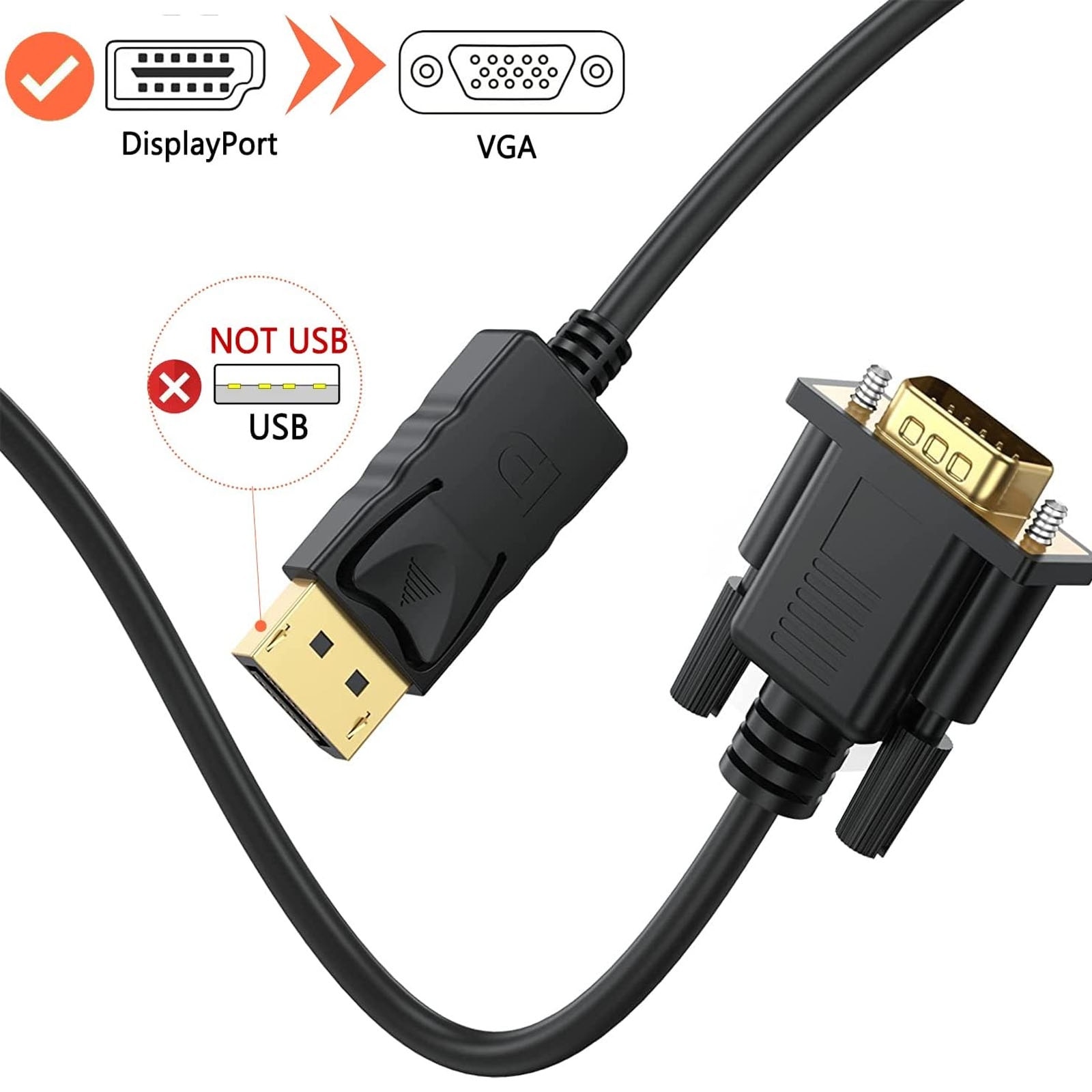 Cablu DisplayPort la VGA, SINBINTA, Full HD, 60Hz, Rezolutie maxima la ...