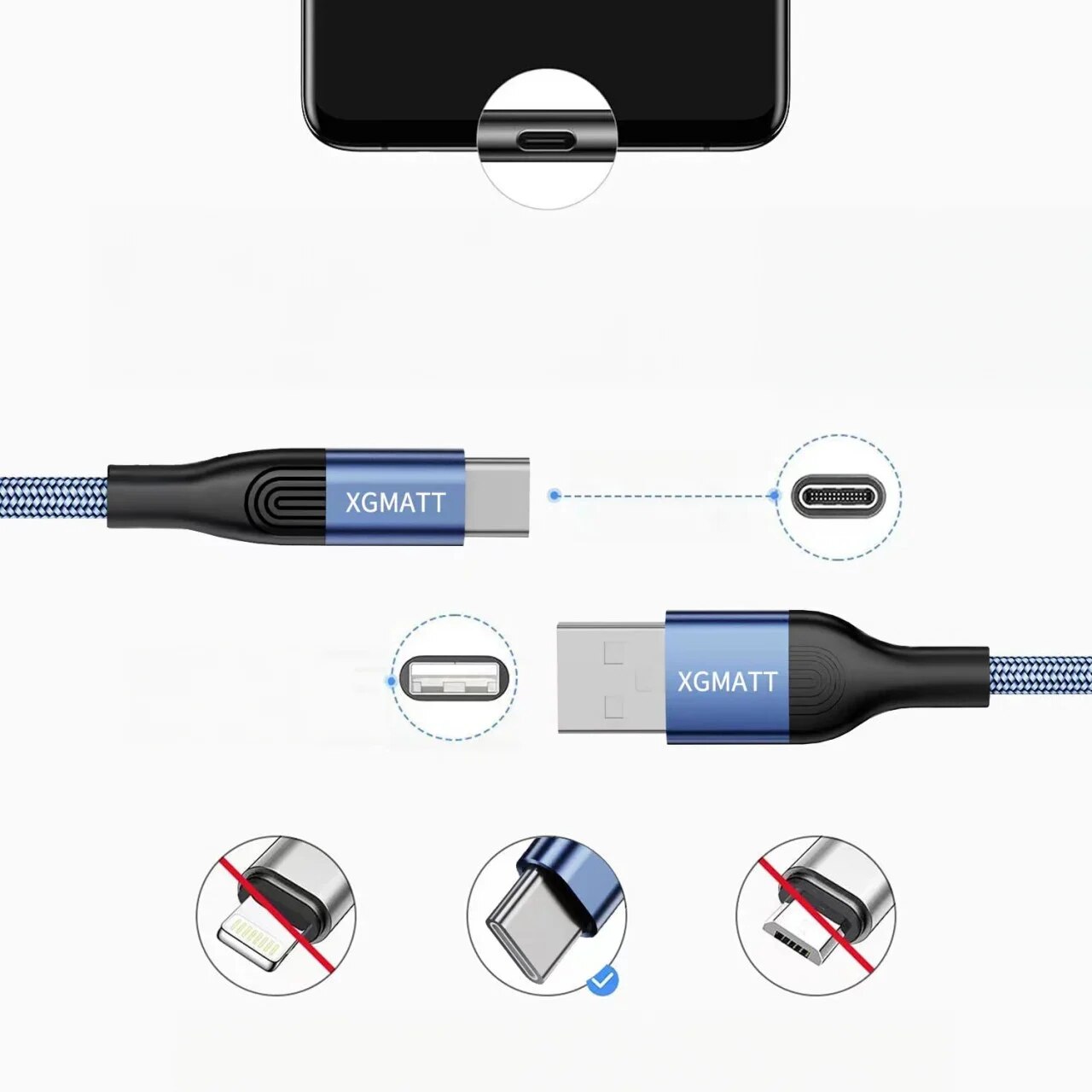 Set 5 cabluri USB Type C Xgmatt, nailon/aliaj de aluminiu, gri/negru ...