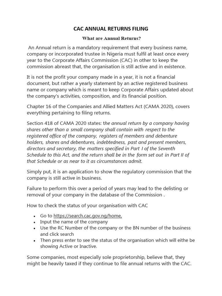 How to File Your CAC Annual Returns: A Step-by-Step Guide for Nigerian ...