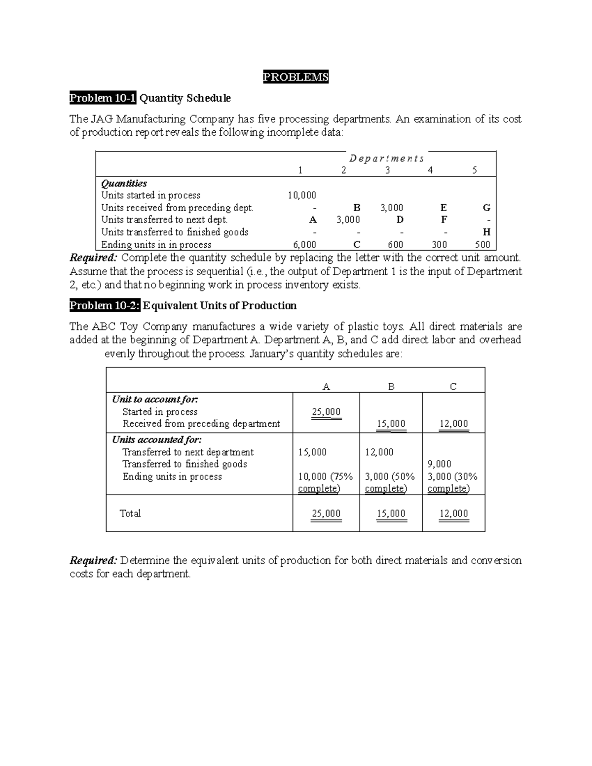 CAC Problems 10-1 to 10-4 Quantity and Equivalent Units Analysis - Studocu