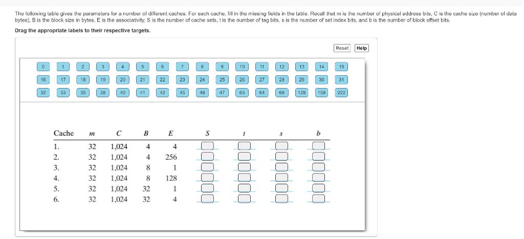 b. For a 2-way set associative cache, fill in the two | Chegg.com