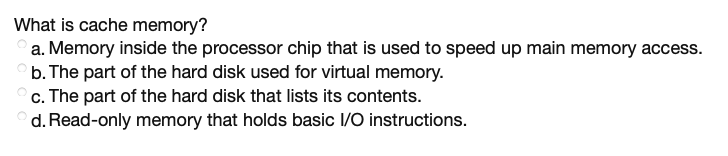 Solved What is cache memory? a. Memory inside the processor | Chegg.com