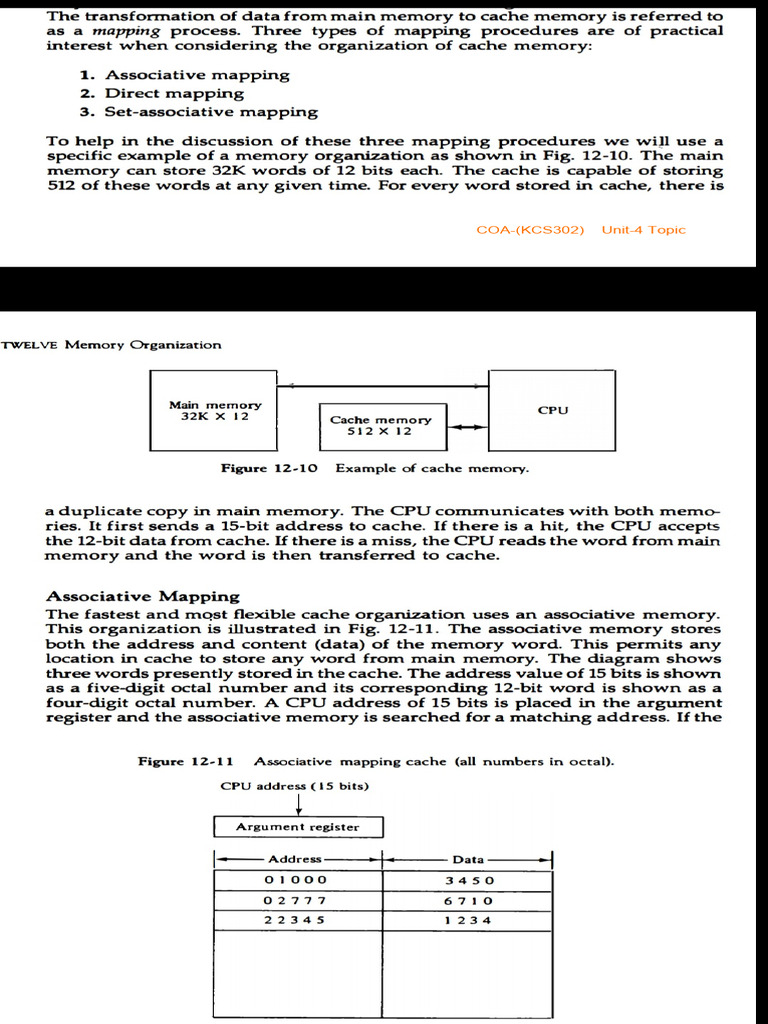 Mapping Process & Cache Memory Performance Notes of COA | PDF