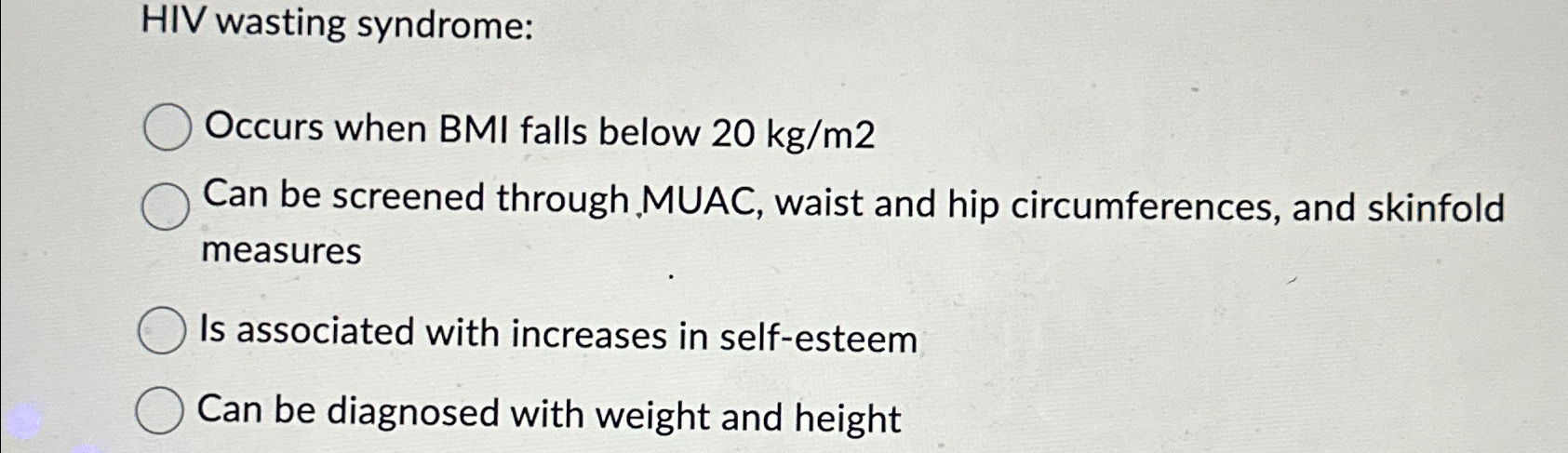Solved HIV wasting syndrome:Occurs when BMI falls below | Chegg.com