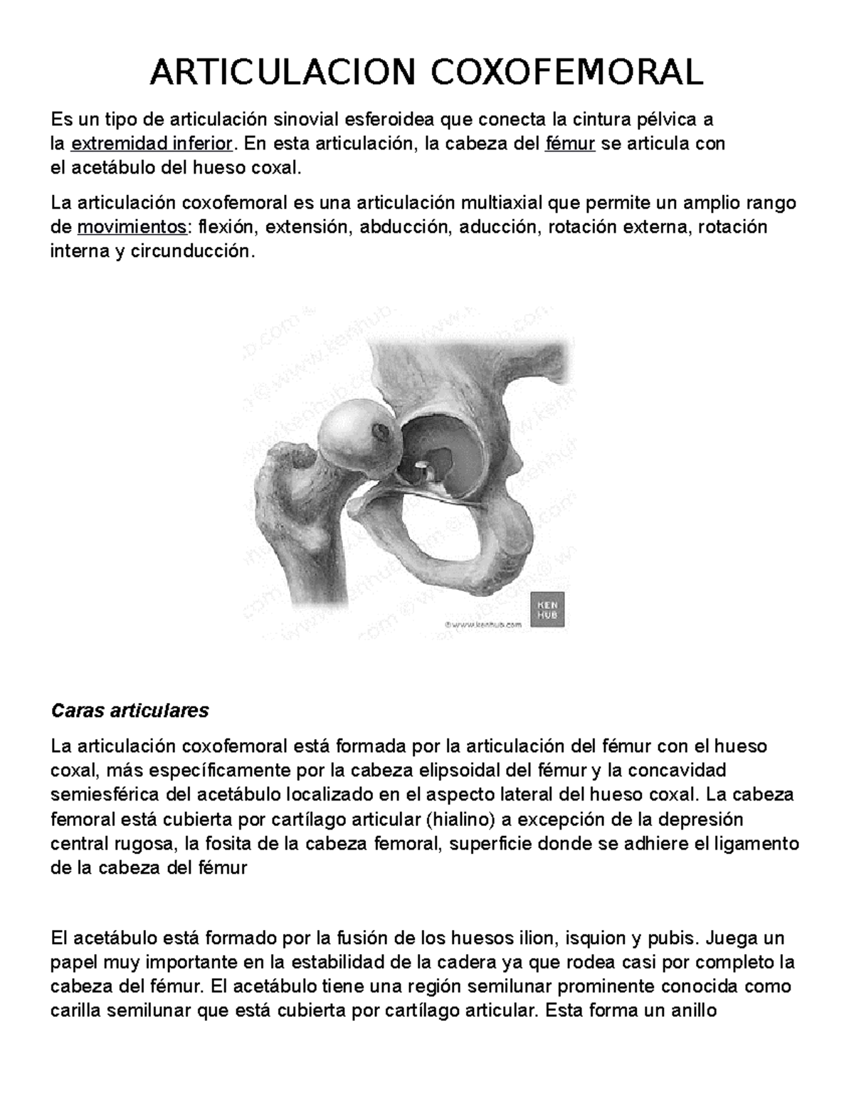 Articulación Coxofemoral: Estructura y Función en la Cadera - Studocu
