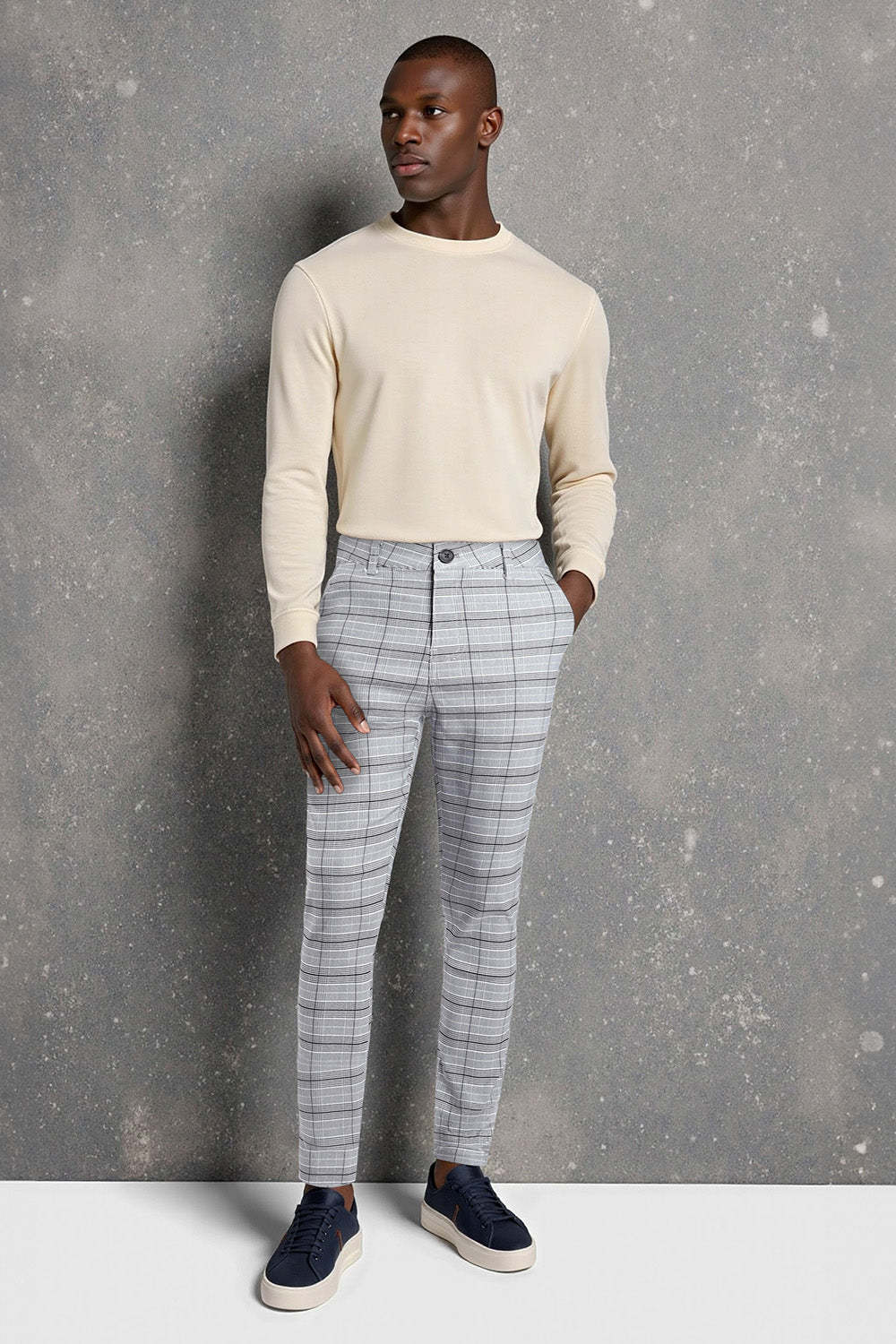 Mens Stretch Skinny Grid Pant - Grey – fashioninprint
