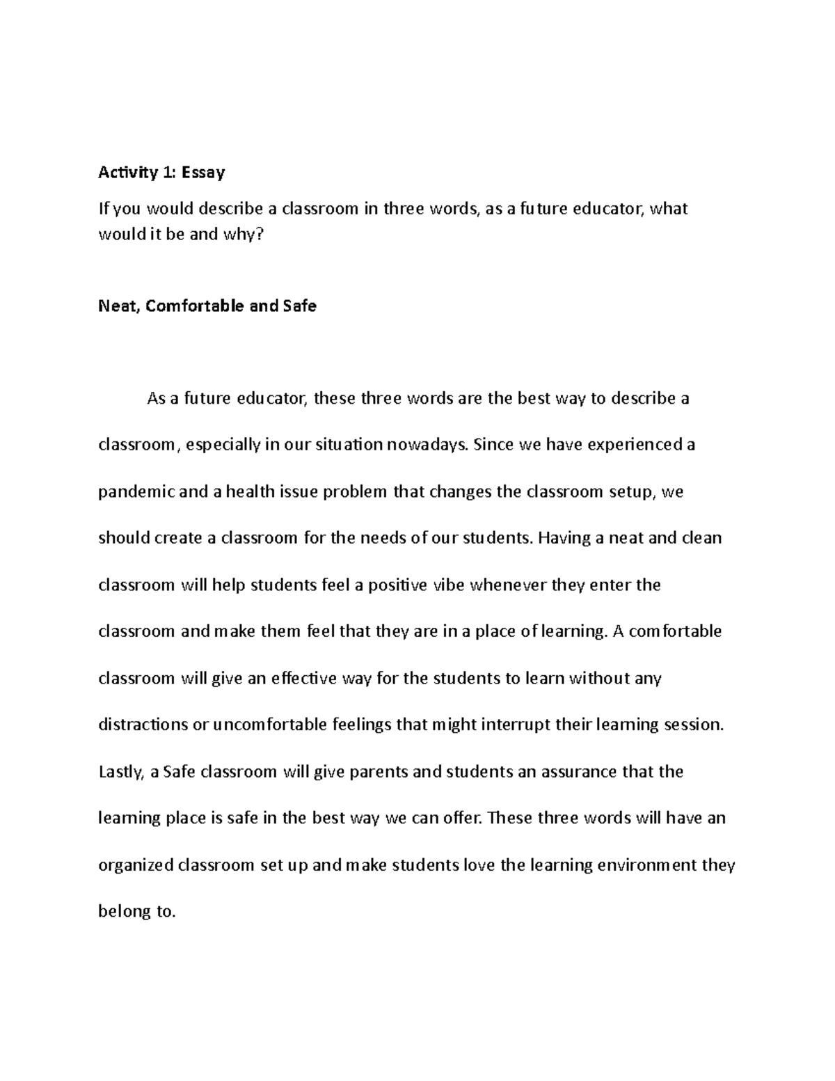 Caed 120 Learning Module: Activity #1 - Activity 1: Essay If you would ...