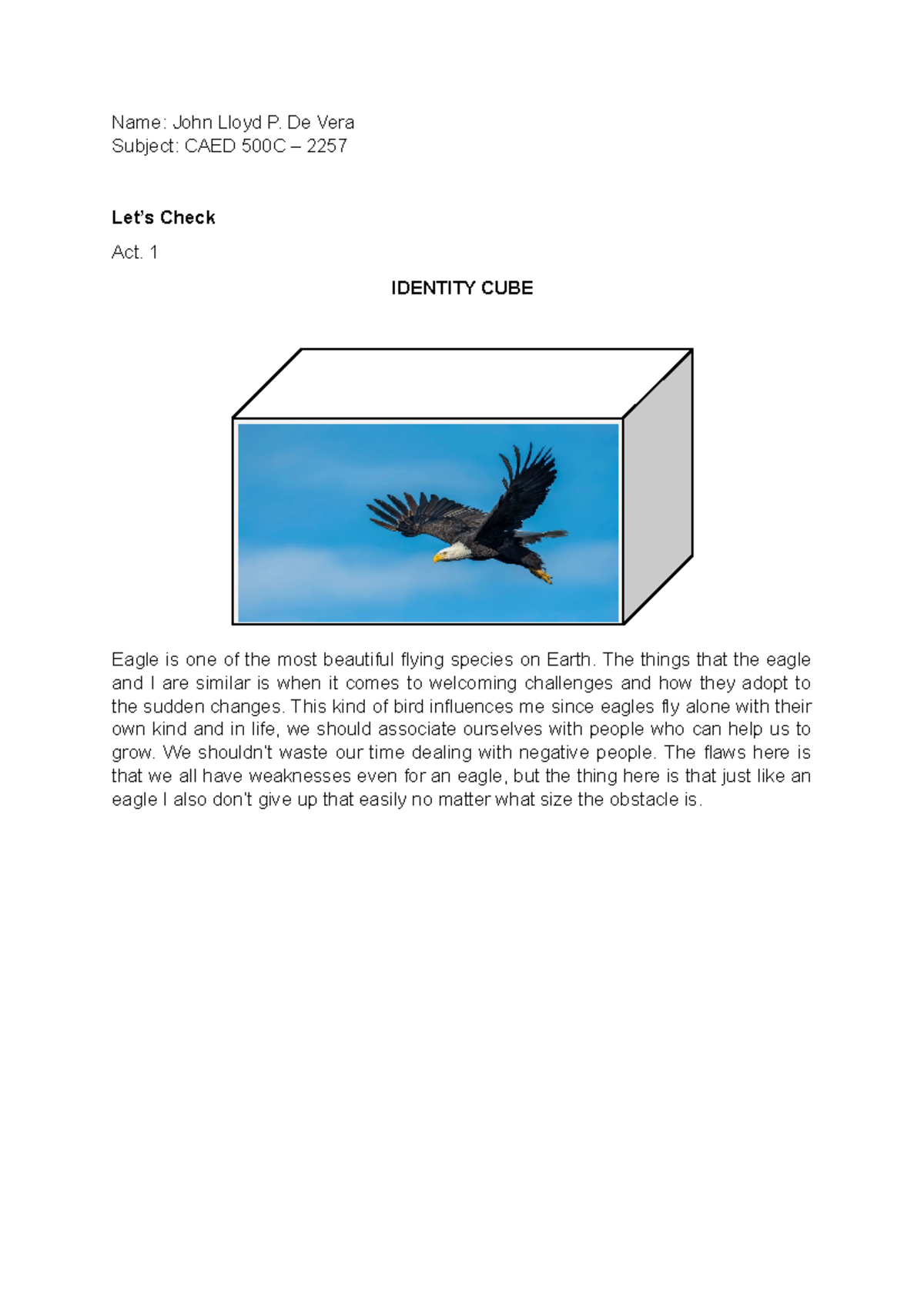 CAED 500 - Module 1 - CAED 500 - LET’S CHECK! ACTIVITY 1 IDENTITY CUBE ...