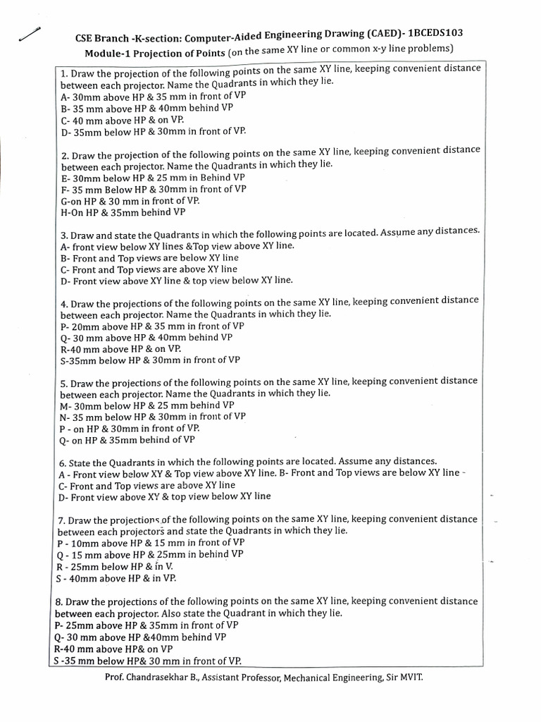 Caed-question-bank - Questions - PROJECTION OF POINTS A point P is 30 ...