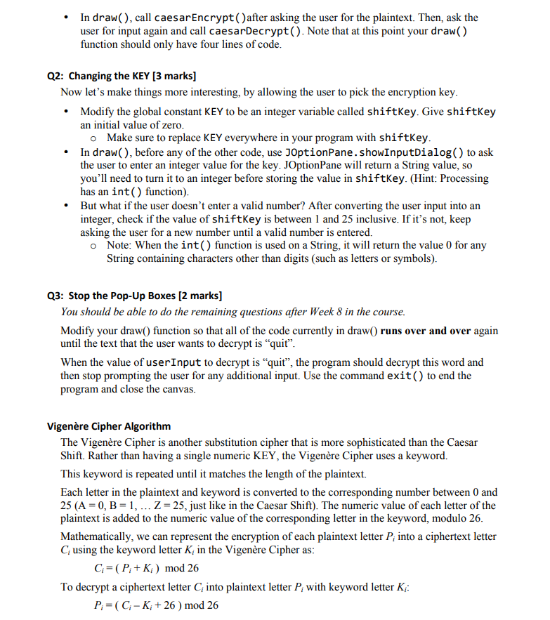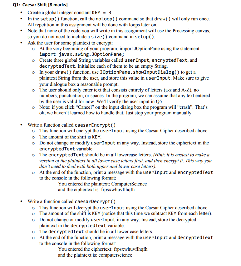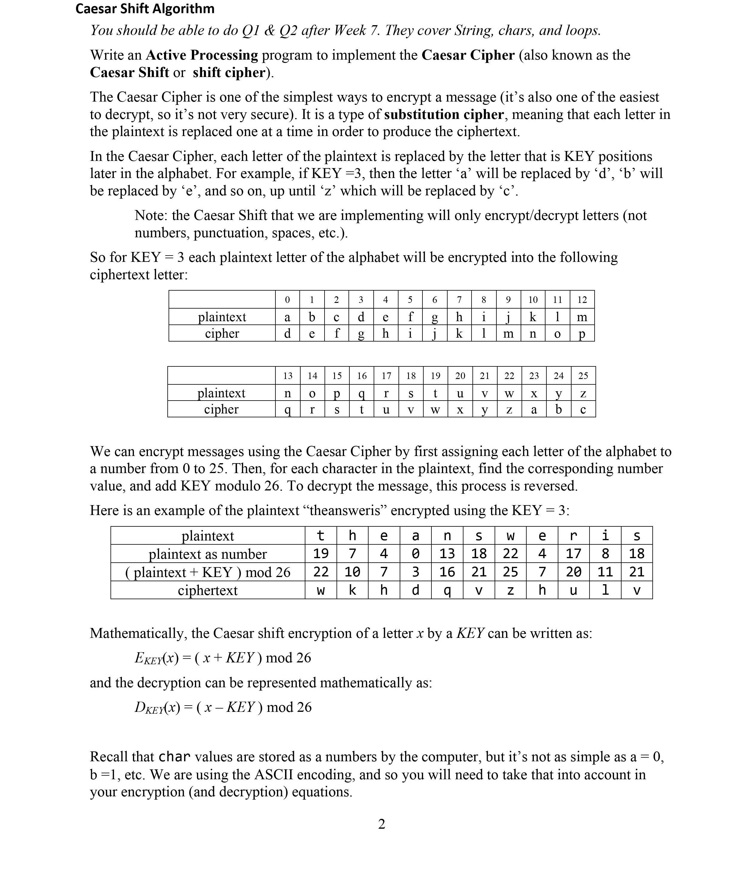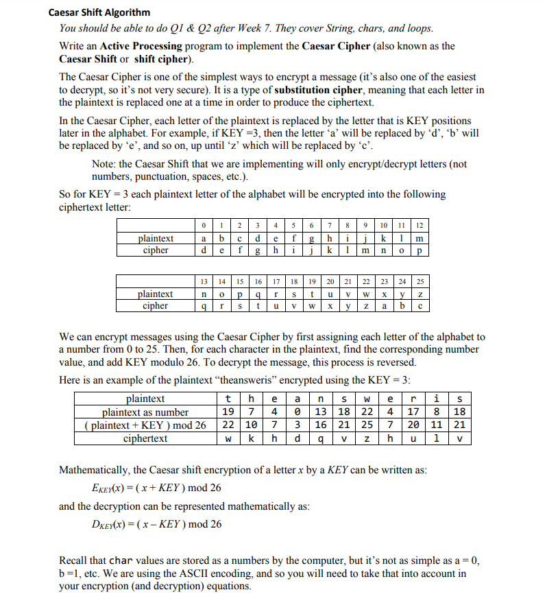 Caesar Shift Algorithm You should be able to do Q1 & | Chegg.com