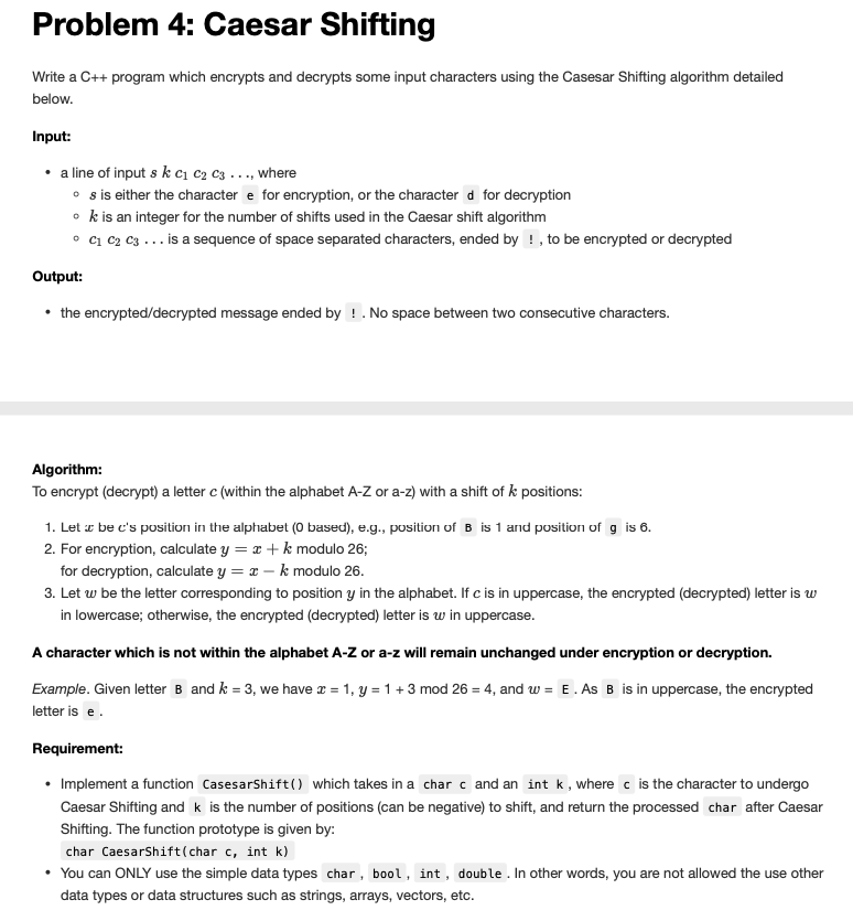Problem 4: Caesar Shifting Write a C++ program which | Chegg.com