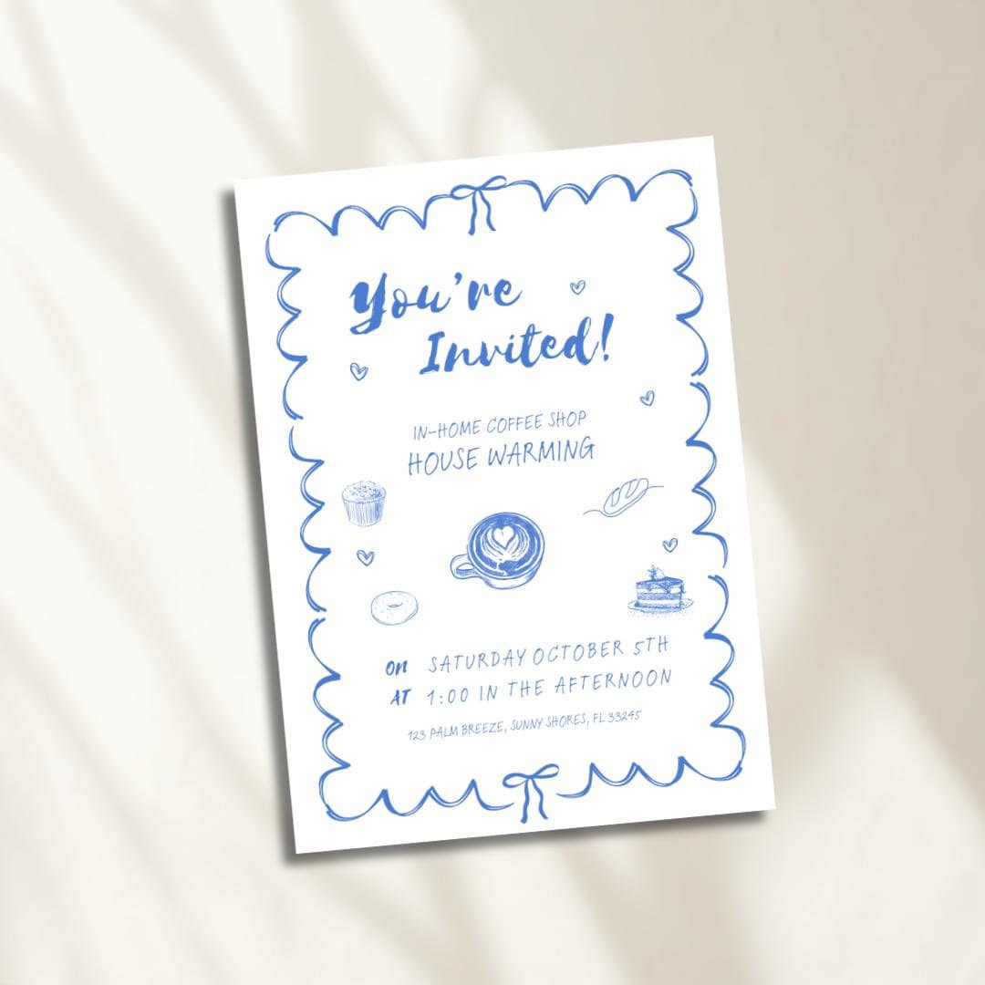 At Home Cafe Invite, Cafe Invitation, Coffee House, Housewarming Invite ...