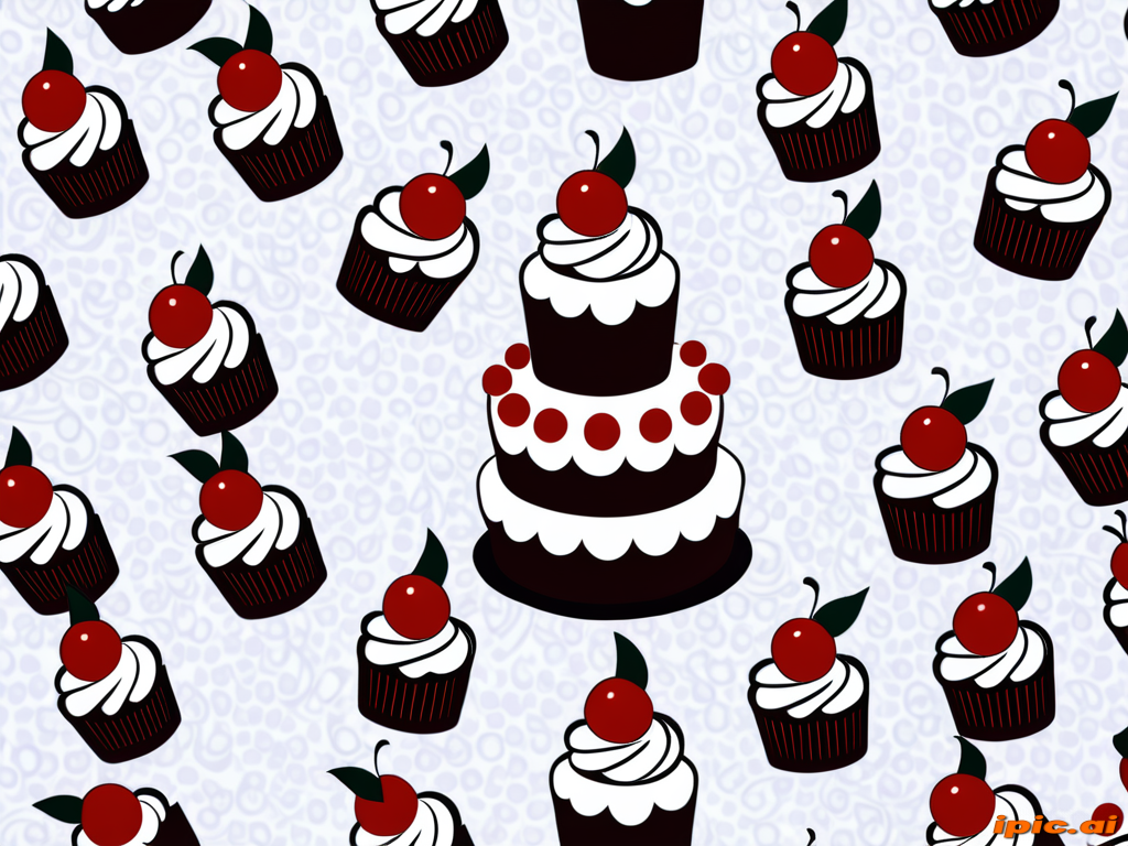 Colorful Pattern Featuring Delicious Cupcakes and a Festive Birthday Cake