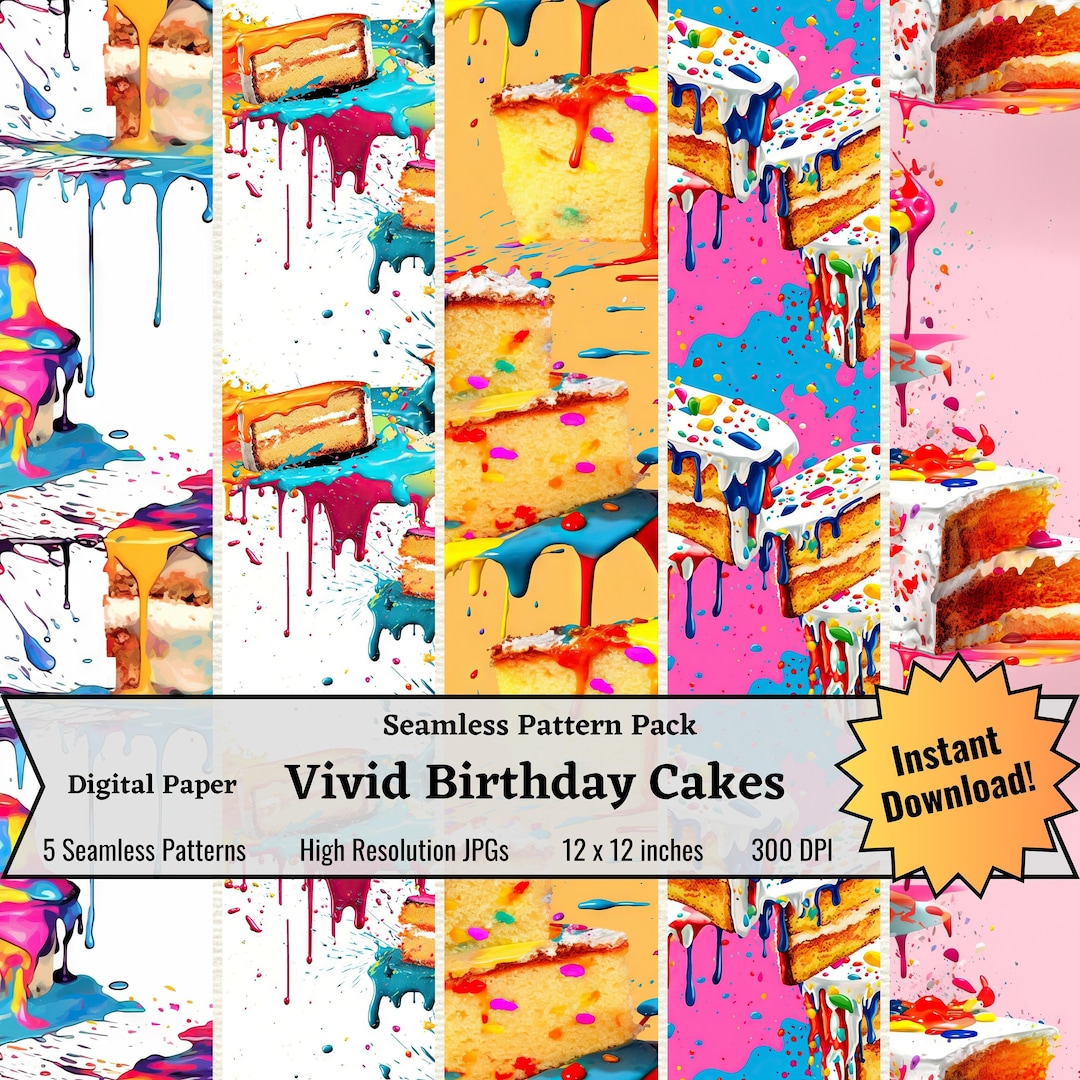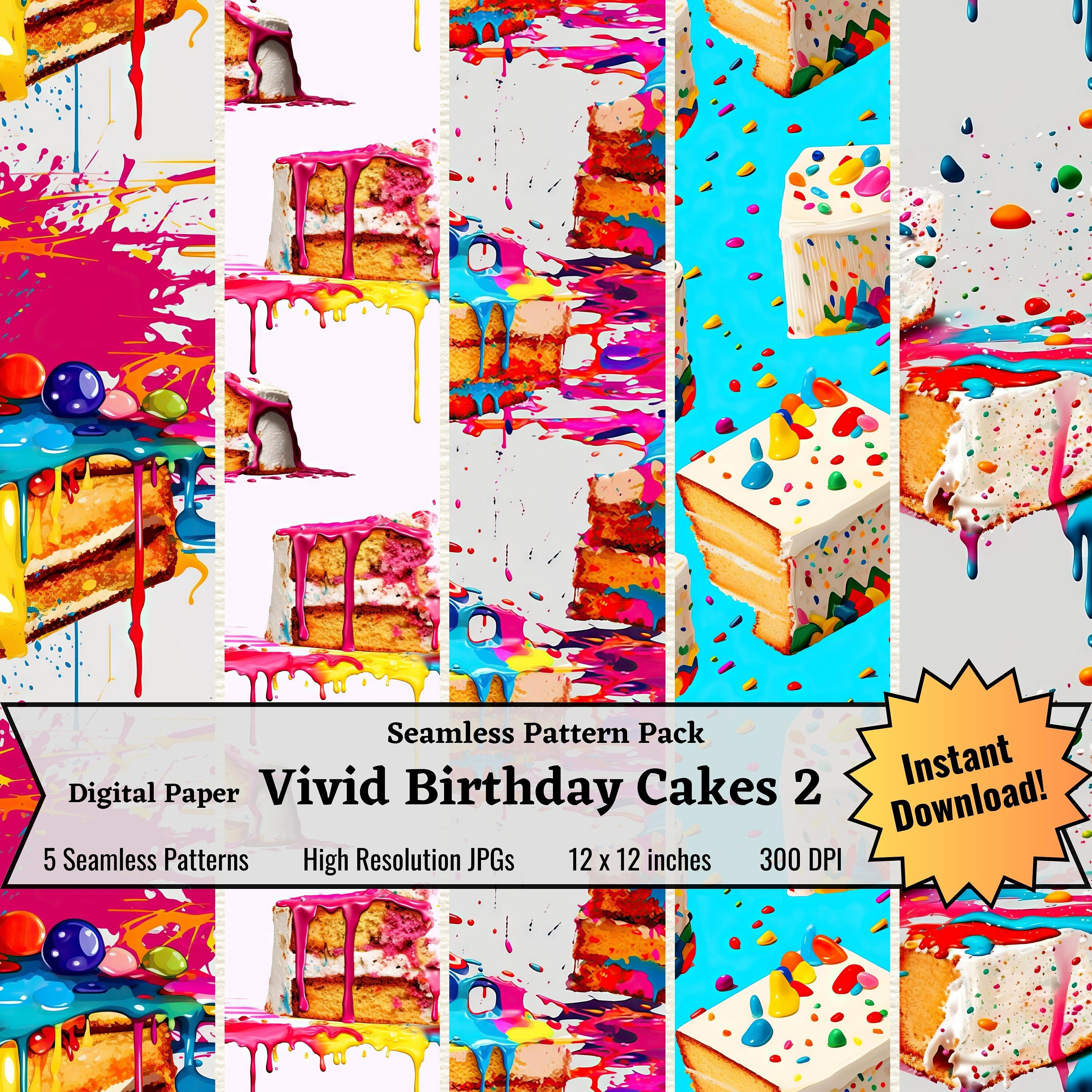 Vivid Birthday Cake Patterns, Seamless Birthday Cake Patterns, Colorful ...
