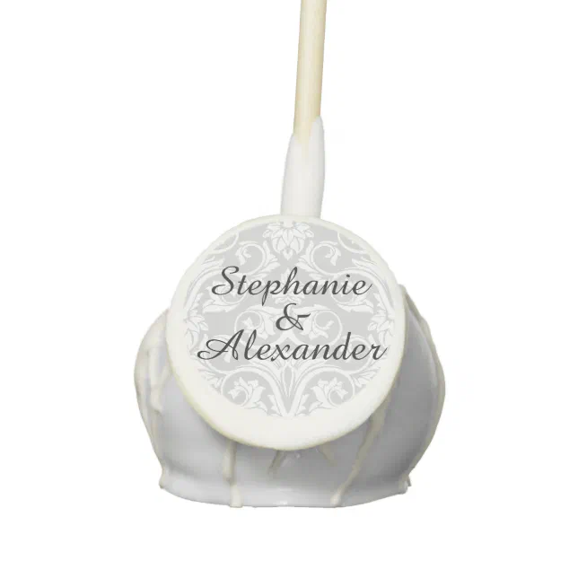 Elegant Script Wedding Cake Pops with Names Damask | Zazzle