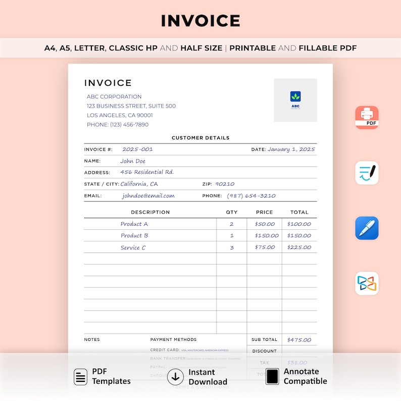 Invoice Template Ca Slim | Invoice template, Invoicing, Templates