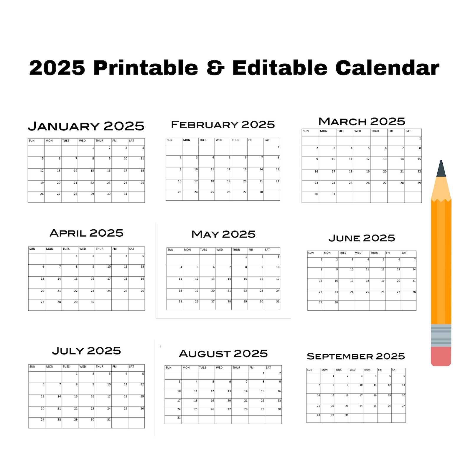 Printable Calendar 2025,all Months 2025 Calender, 2025 Calander, 2025 ...