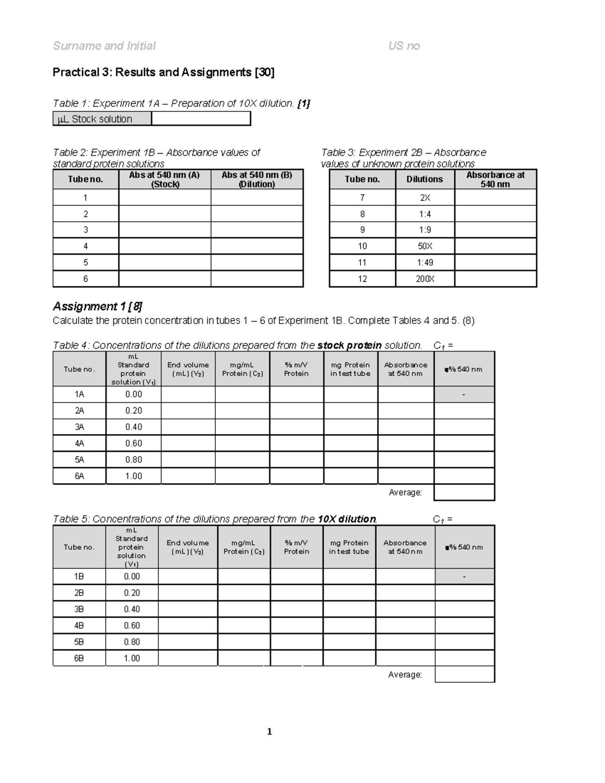 US Practical 3: Protein Concentration Calculations and Results - Studocu